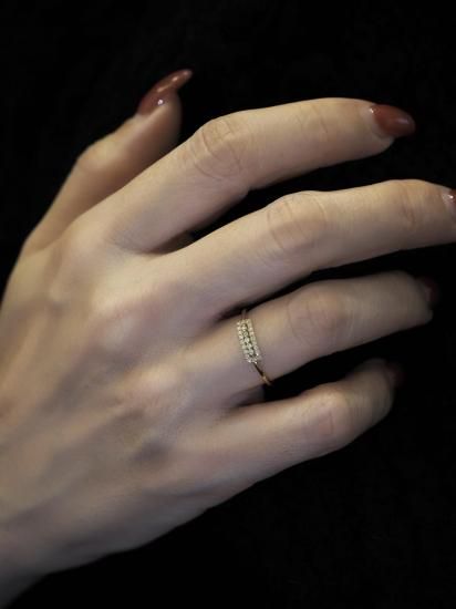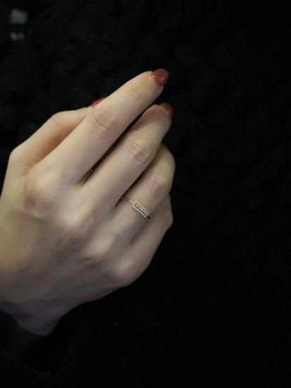 横長のモチーフがかわいいデザインリングです!0.104ctもあるデザインリングでこんなお値段ではもう出会えないのでぜひこの機会をお見逃しなく!