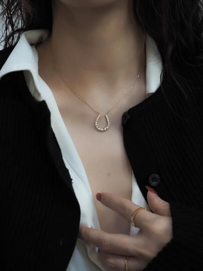 10/24発売(作れます)K18orプラチナ 1ctダイヤモンド馬蹄ネックレス
